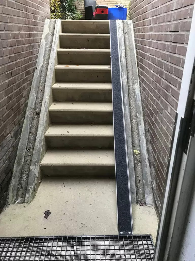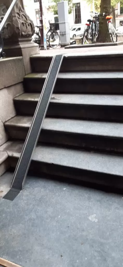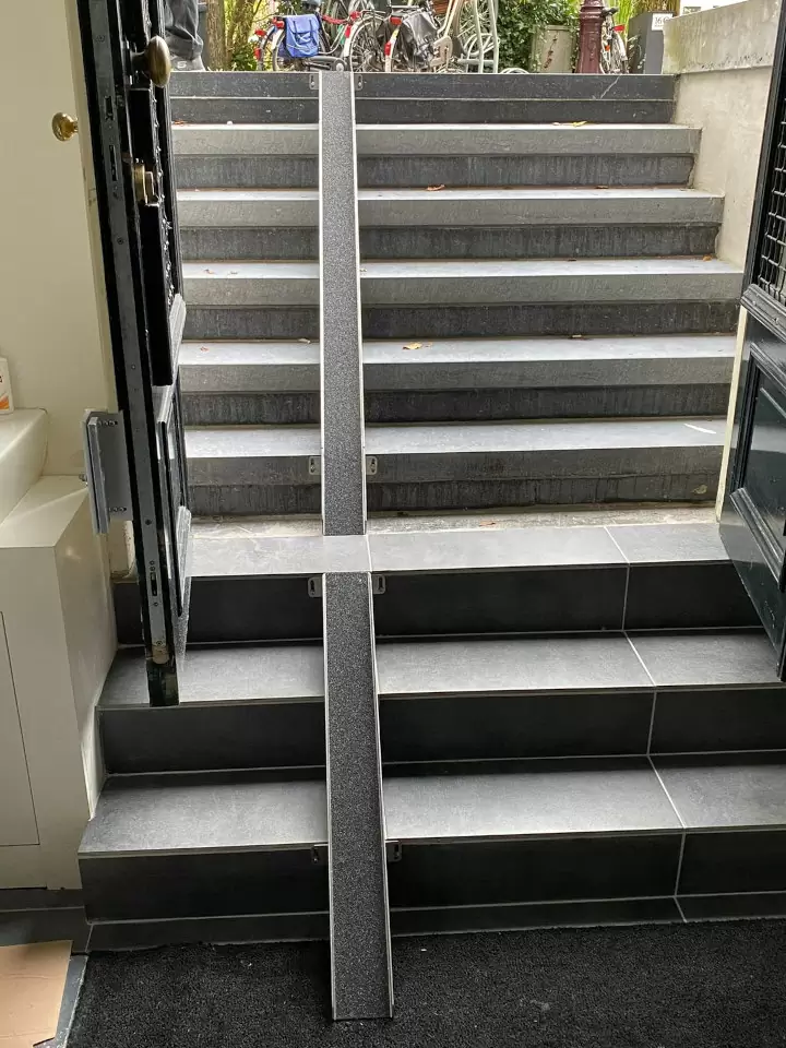Lo Minck Mobility heeft speciale, in hoogte instelbare houders ontwikkeld die eenvoudig kunnen worden geïnstalleerd om de hellingshoek van de fietsgoot te optimaliseren. Deze houders zijn geschikt voor zowel binnen- als buitengebruik, en bieden de flexibiliteit om de helling aan te passen aan de specifieke omstandigheden van de trap.