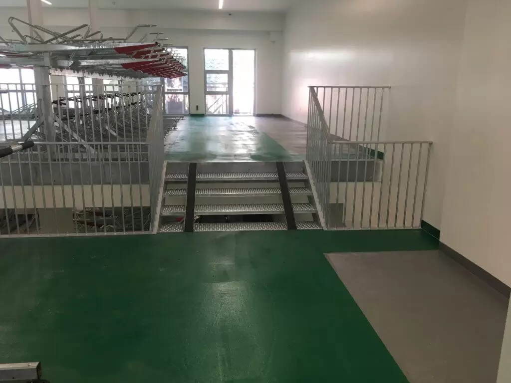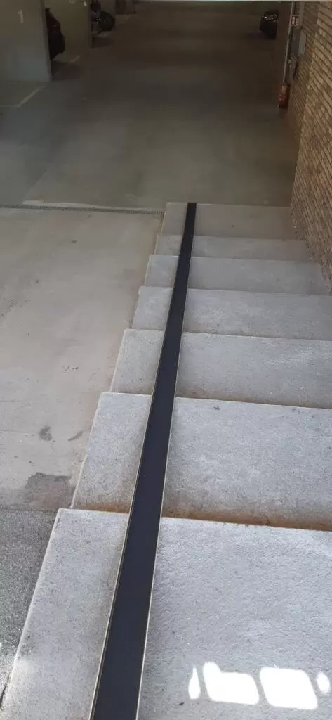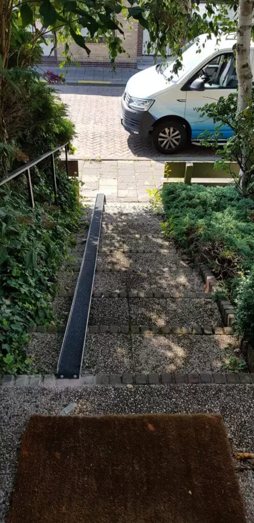 Wanneer de opklapbare fietsgoot in de opgeklapte positie staat, blijft de trap volledig toegankelijk voor dagelijks gebruik, zonder enige belemmering. Bij gebruik van de fiets wordt de goot eenvoudig uitgeklapt en na gebruik weer ingeklapt, waardoor de trap snel terug beschikbaar is voor normaal verkeer.